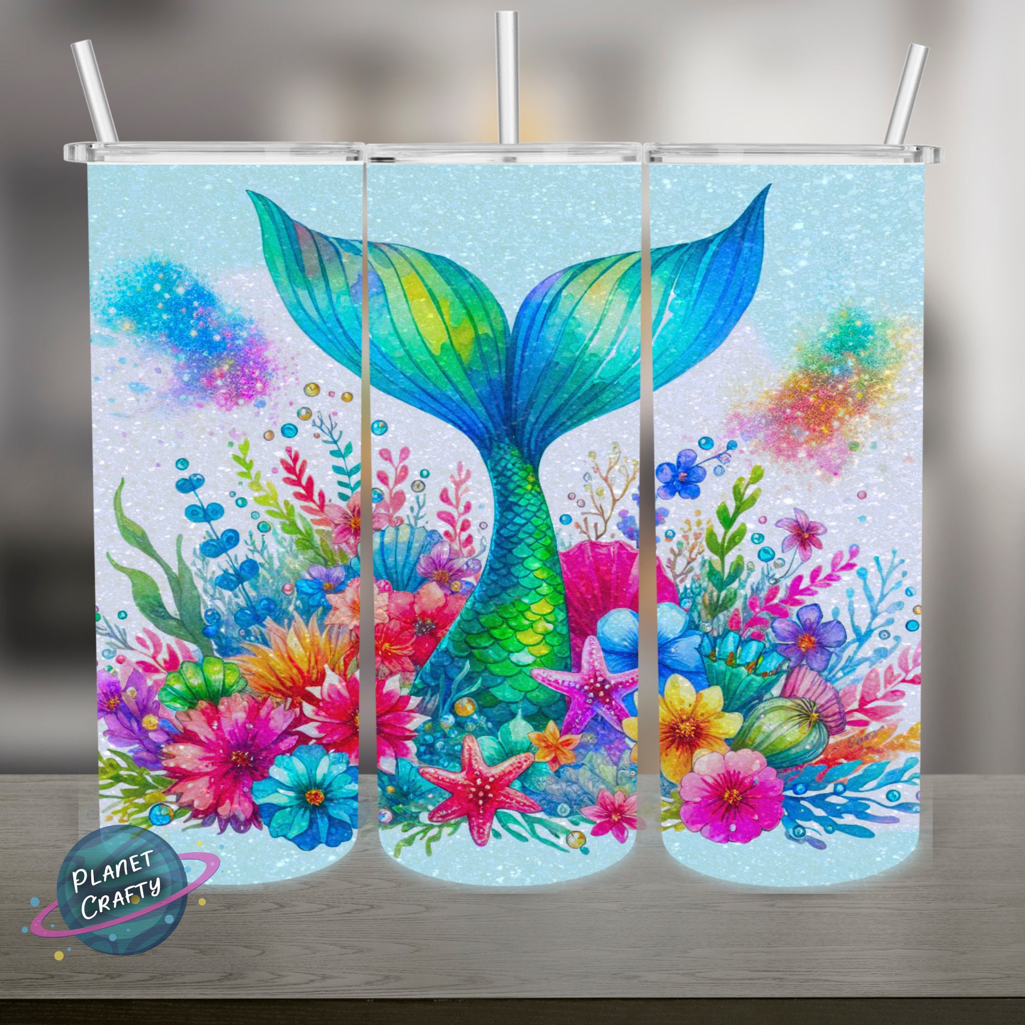 Mermaid Tail, Underwater Floral PNG Design, 20Oz Skinny Tumbler Wrap, Digital Download