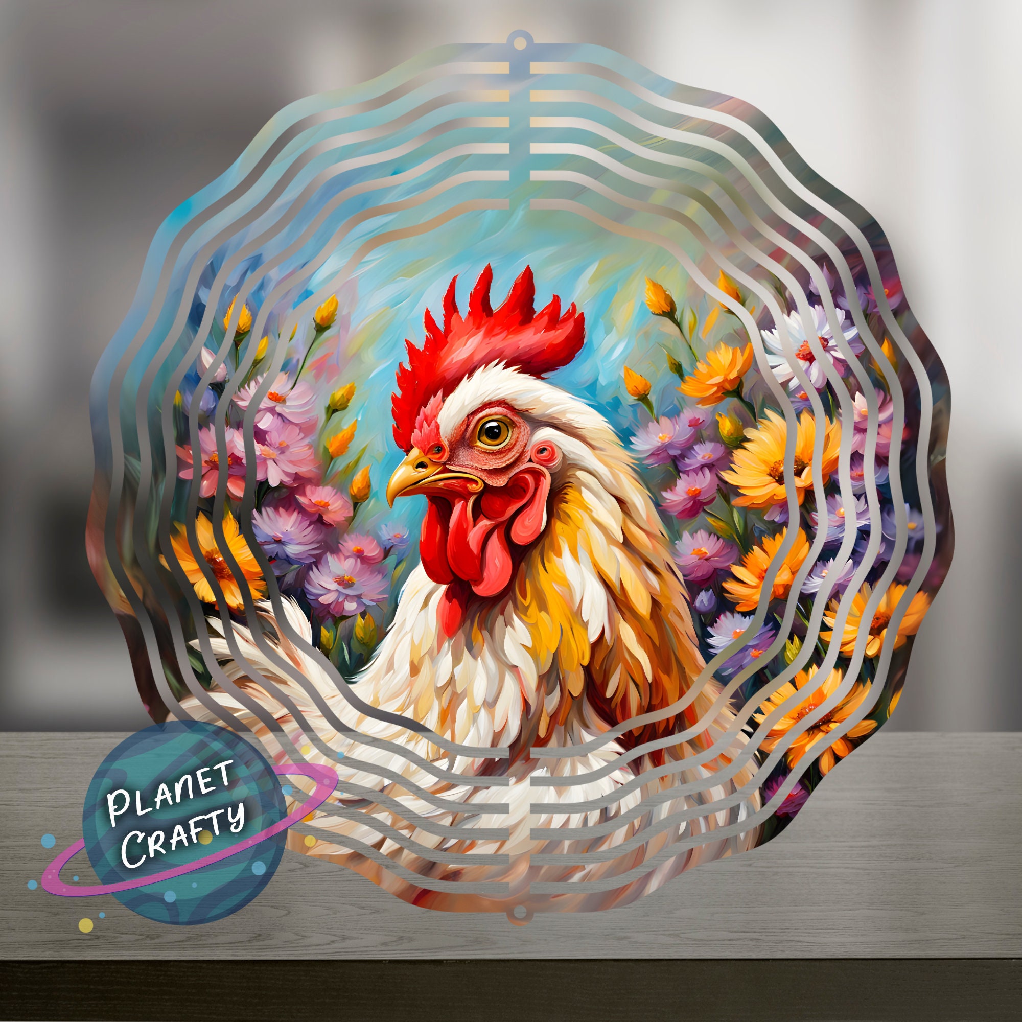 Chicken Illustration, Beautiful Outdoor Nature Scene, Wind Spinner PNG Design, Digital Download