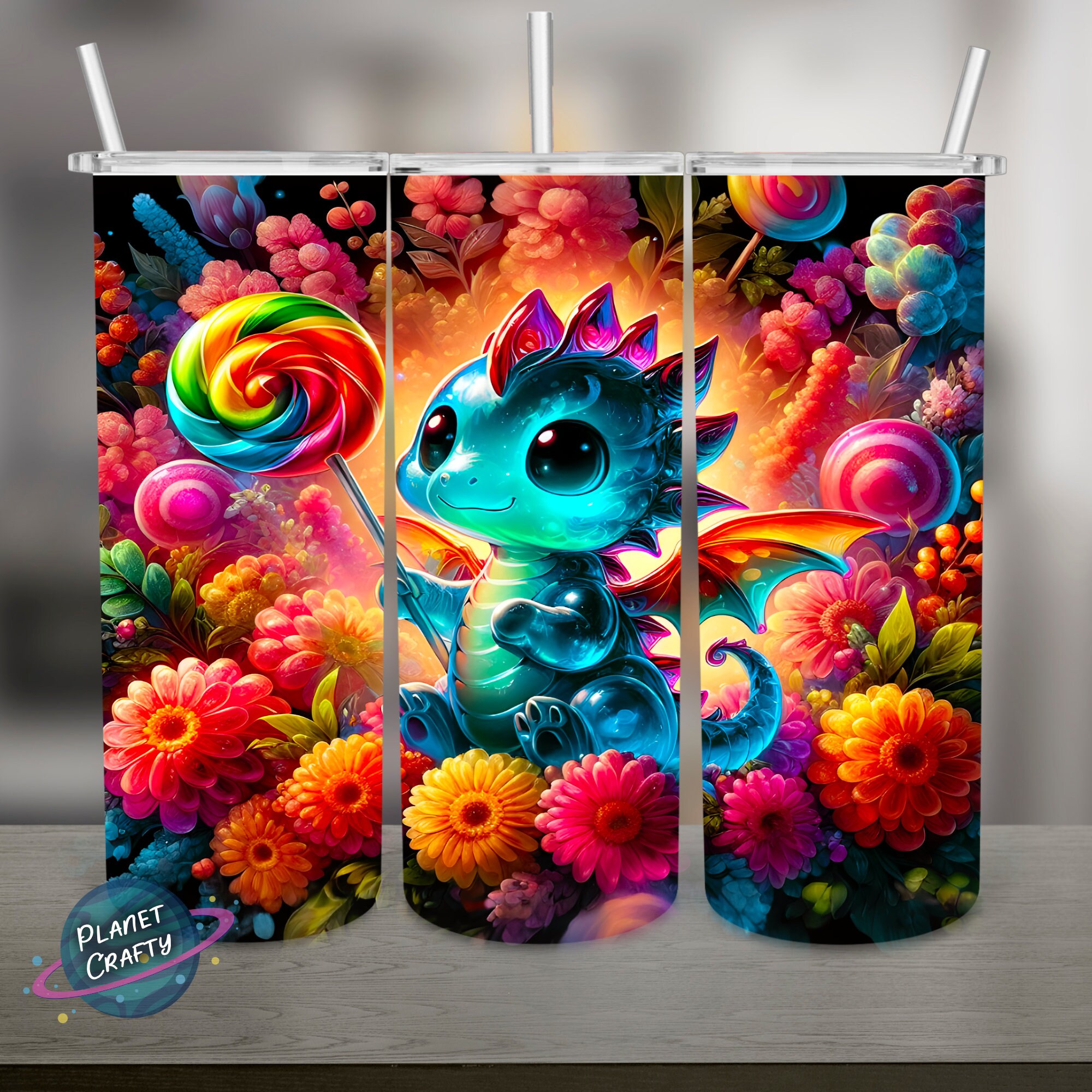 Colorful Candy Dragon png design, 20Oz Skinny Tumbler Wrap, Digital Download