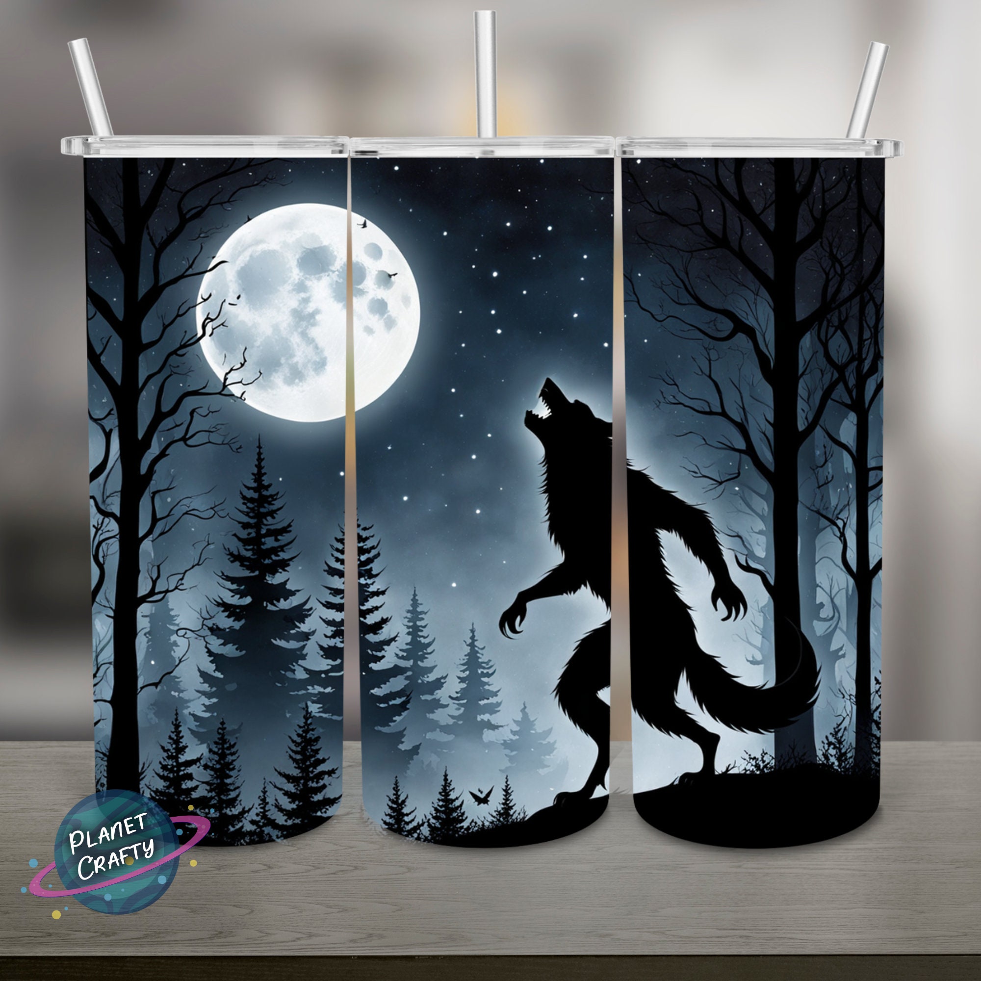 Werwolf Under Moonlight PNG Design, 20Oz Skinny Tumbler Wrap, Digital Download