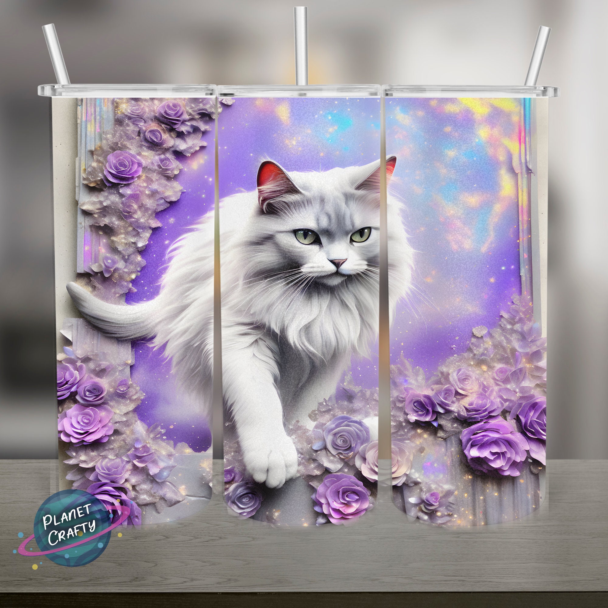 Beautiful cat among purple flowers PNG Design, 20Oz Skinny Tumbler Wrap, Digital Download