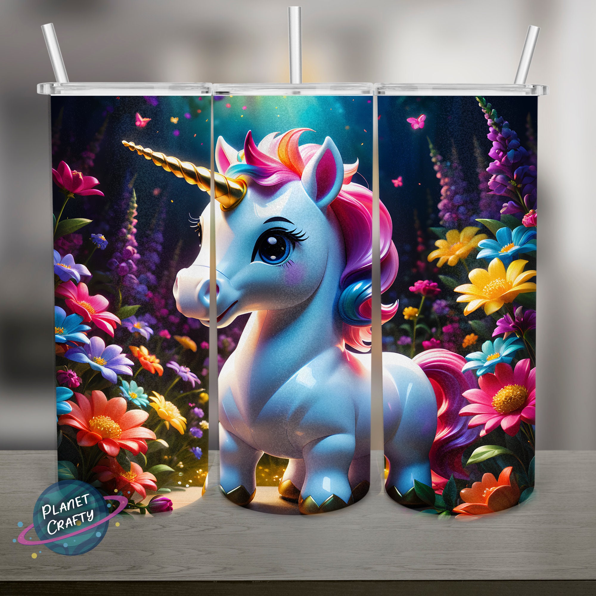 Cute, Colorful Toy Unicorn PNG Design, 20Oz Skinny Tumbler Wrap, Digital Download