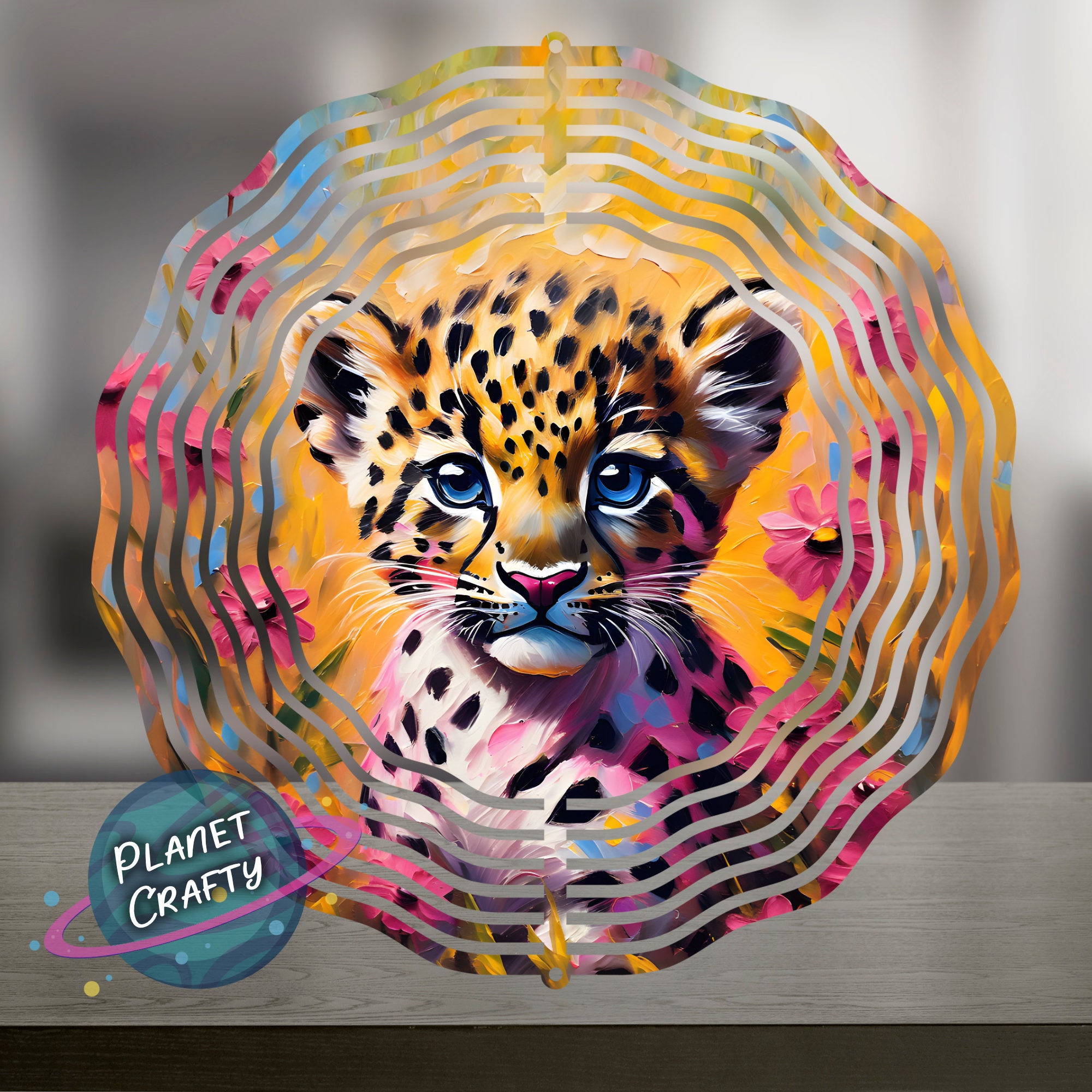 Spotted Leopard, Beautiful Illustratiom, Surrounded byFlowers, Wind Spinner PNG Design, Digital Download