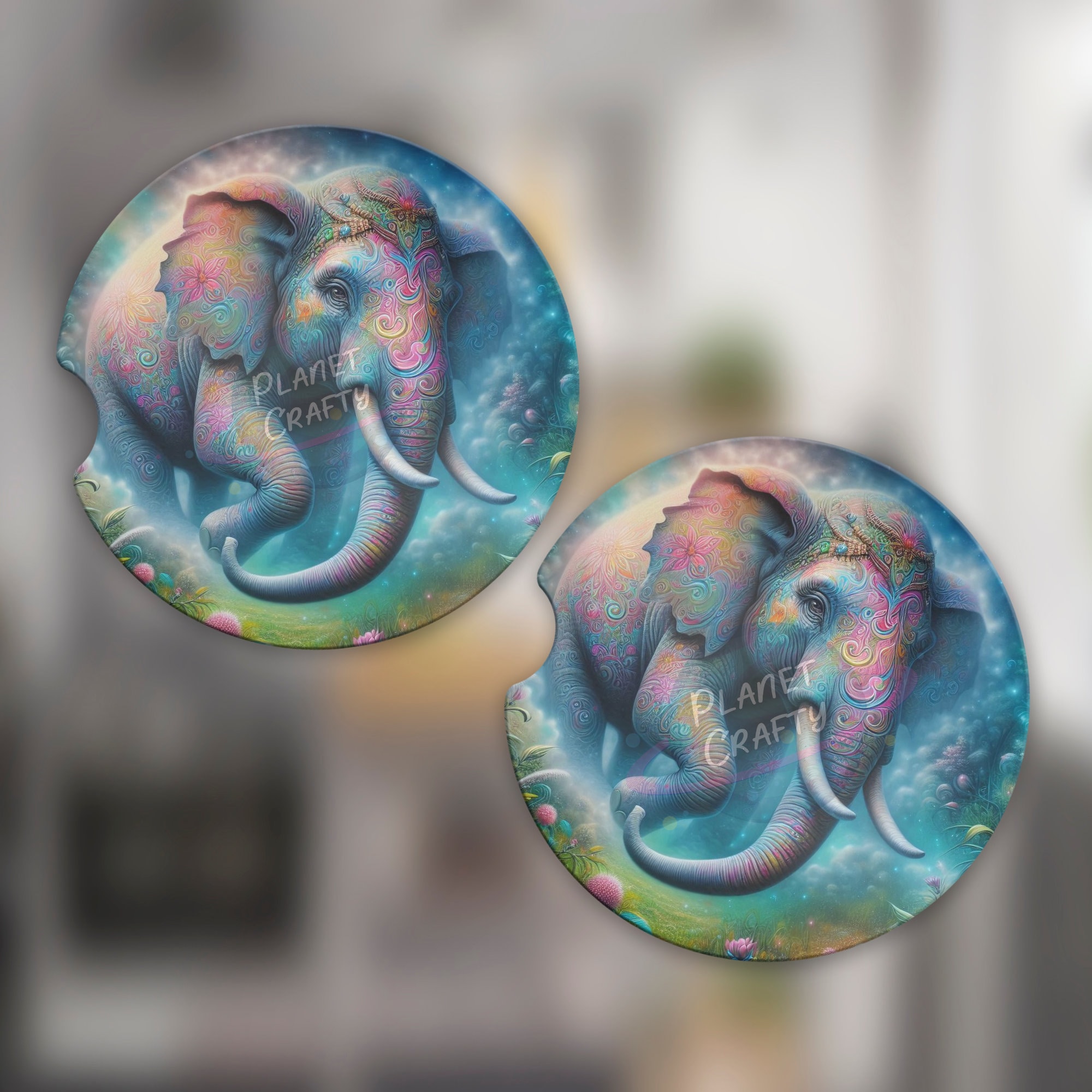 Elephant, Beautiful Artistic Car Coaster PNG Design, Digital Download