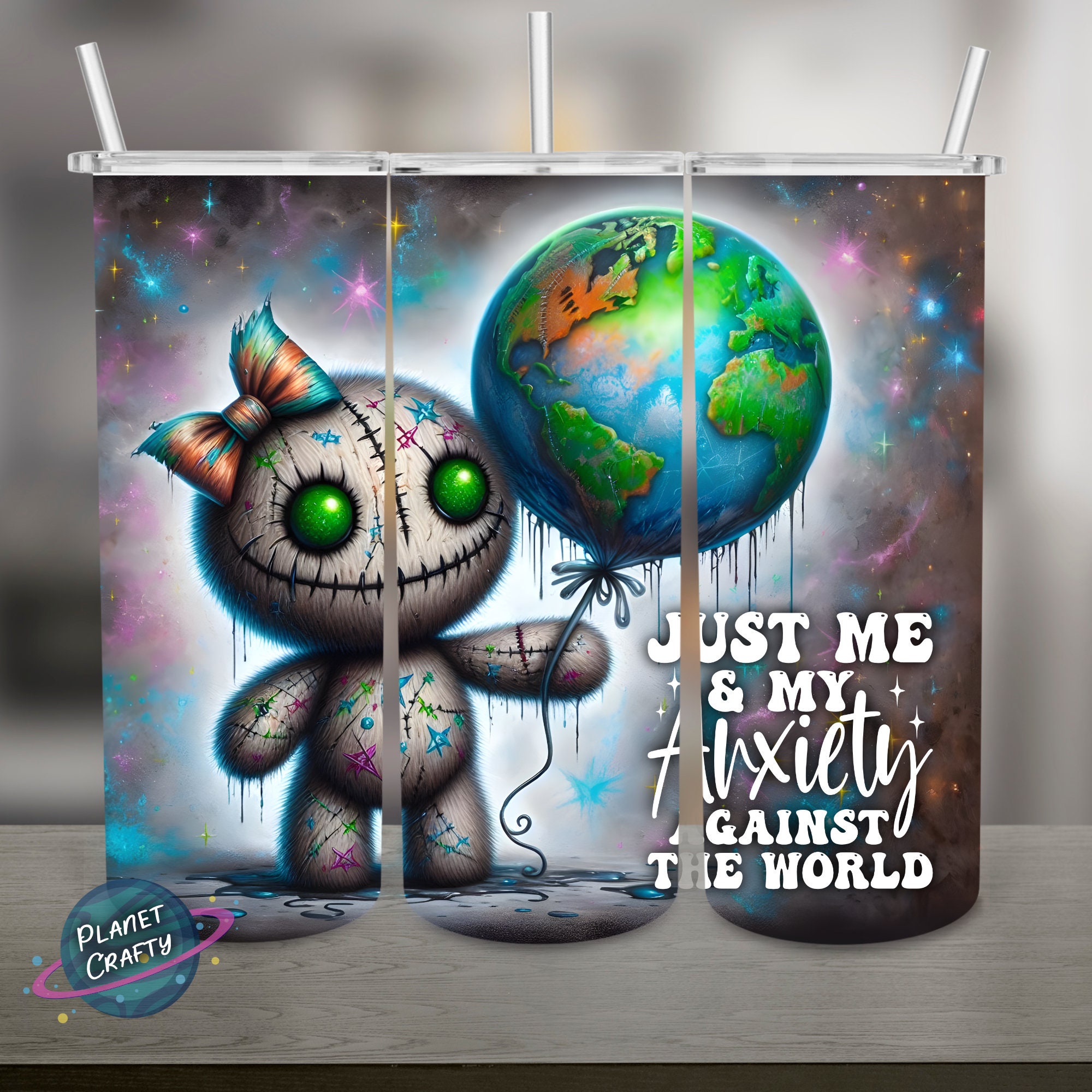Just me and my anxiety against the world, voodoo doll Art Illustration PNG Design, 20Oz Skinny Tumbler Wrap, Digital Download