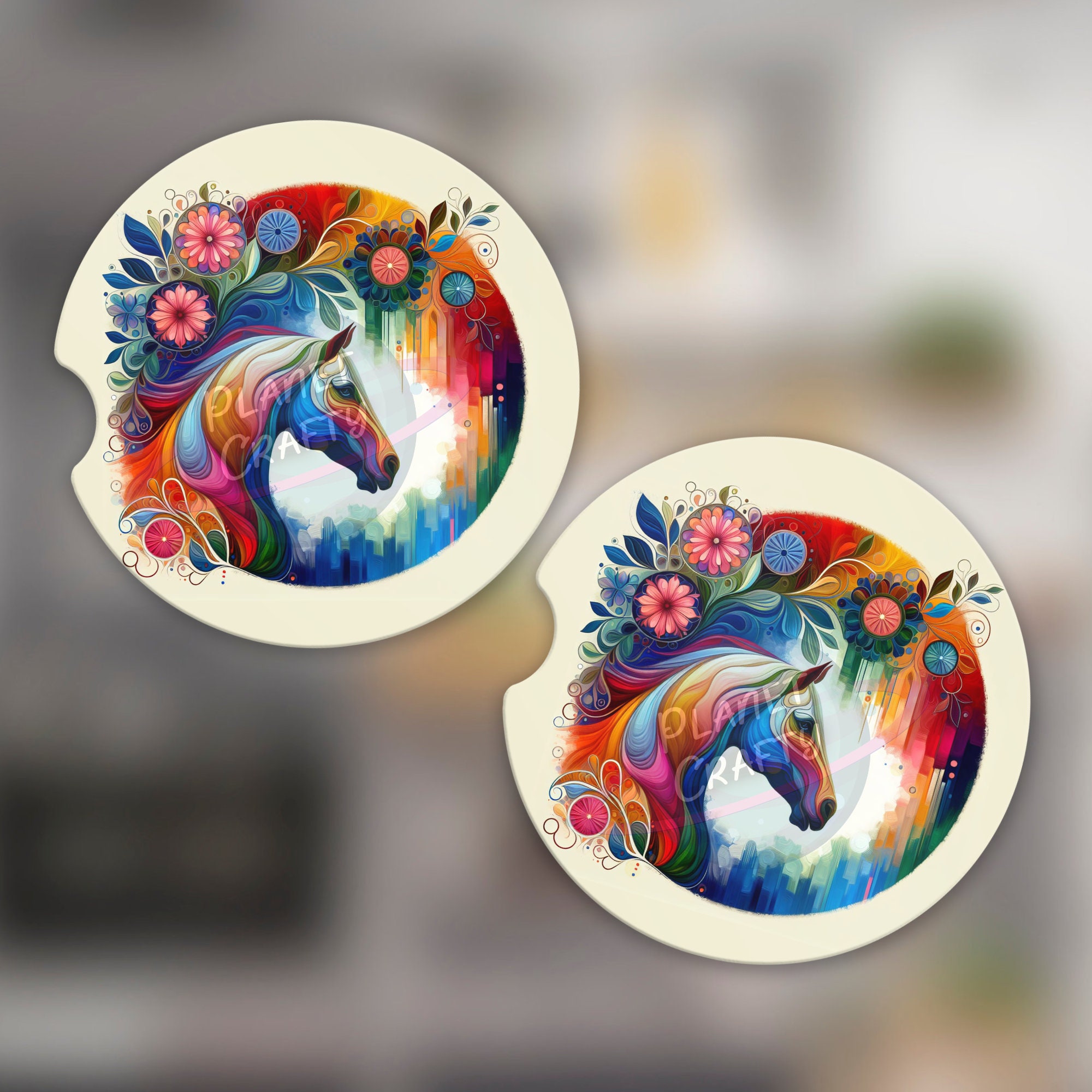 Cute, Colorful Horse Silhoutte Car Coaster PNG Design, Digital Download