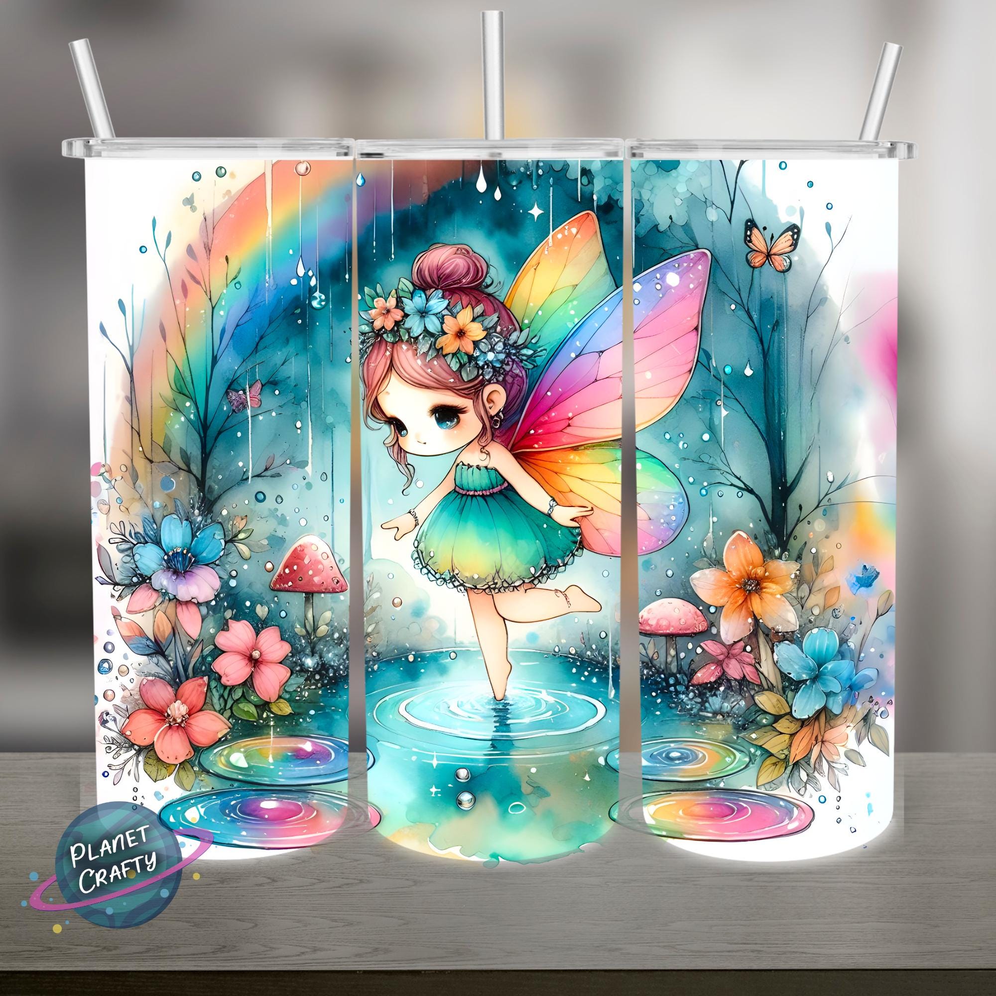 Pretty Fairy, Colorful Rainbow Wings PNG Design, 20Oz Skinny Tumbler Wrap, Digital Download