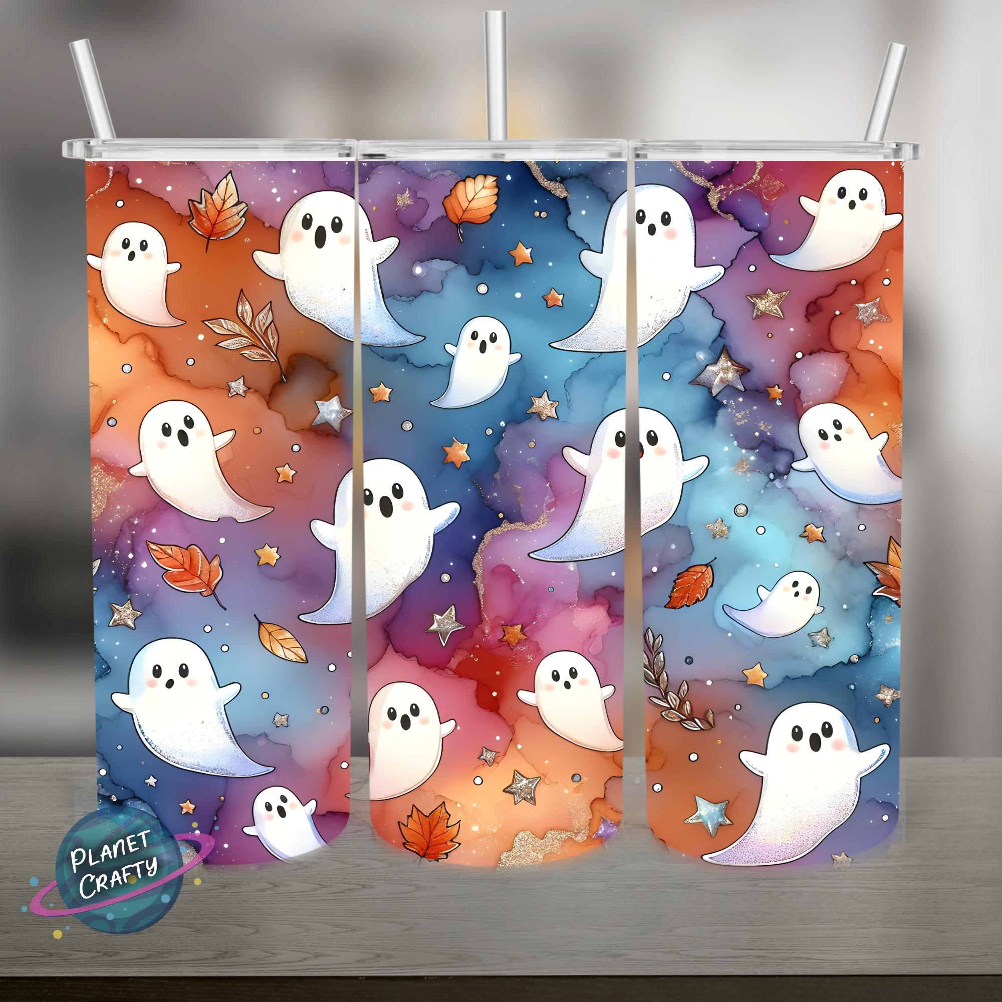 Ghost Pattern, Fall Accents, Halloween PNG Design, 20Oz Skinny Tumbler Wrap, Digital Download