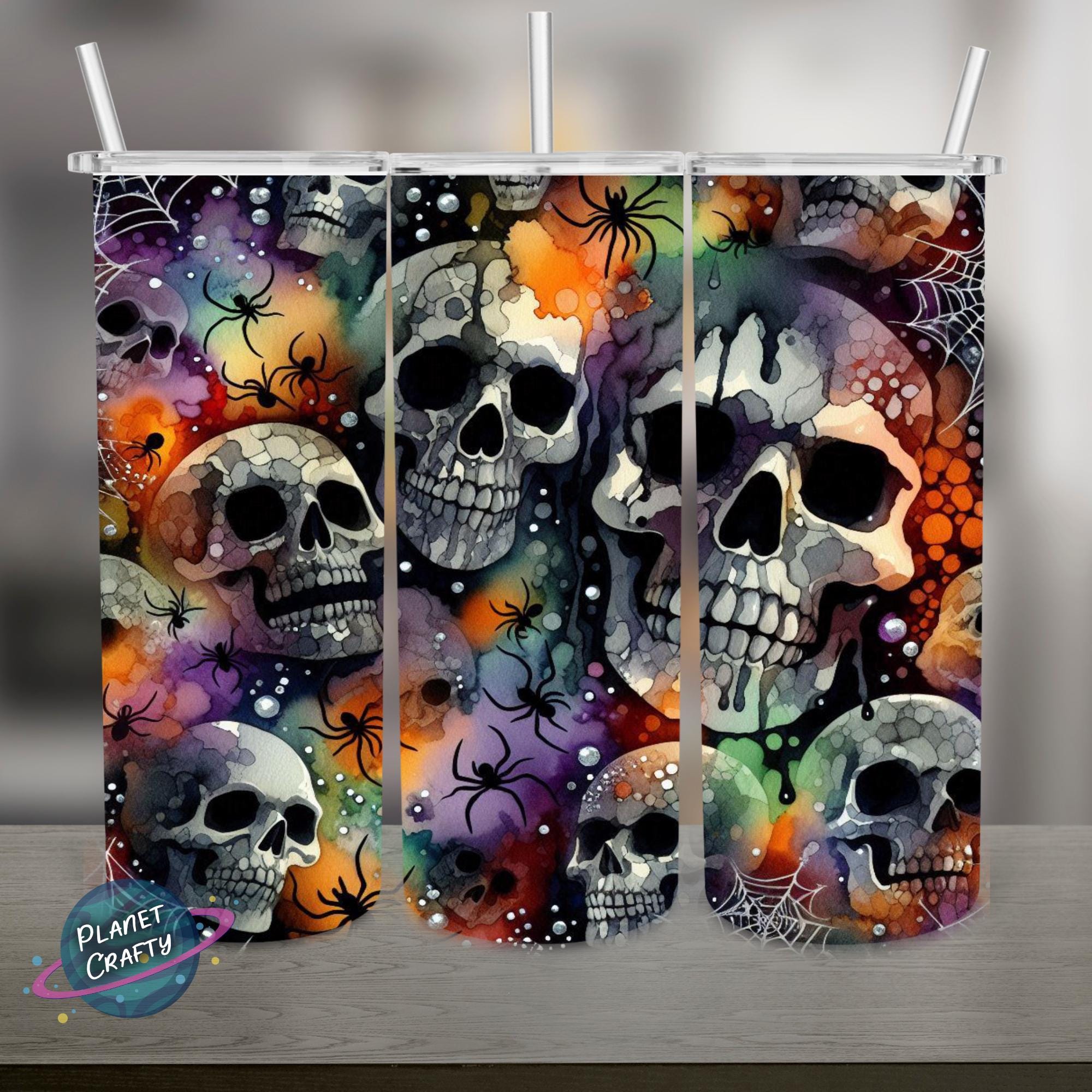 Skulls Pattern, Halloween Skulls PNG Design, 20Oz Skinny Tumbler Wrap, Digital Download