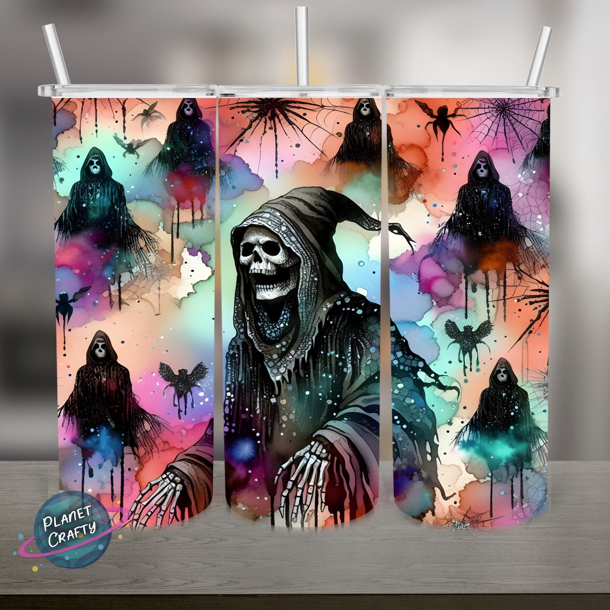 Grim Reaper Pattern, Halloween Skeleton PNG Design, 20Oz Skinny Tumbler Wrap, Digital Download