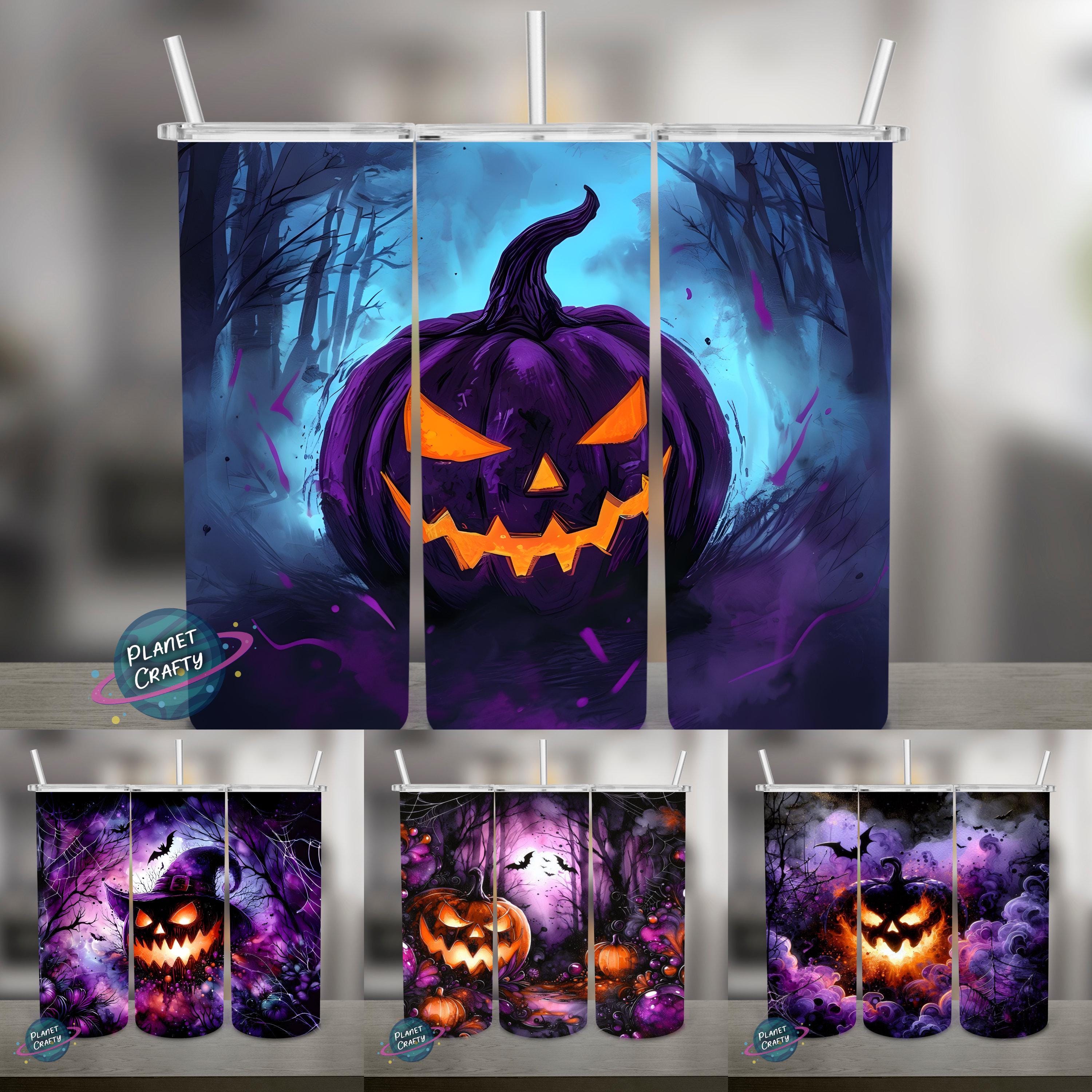 Creepy Purple Pumpkin Designs, Halloween 20oz Skinny Tumbler Wraps, Sublimation Designs, Bundle