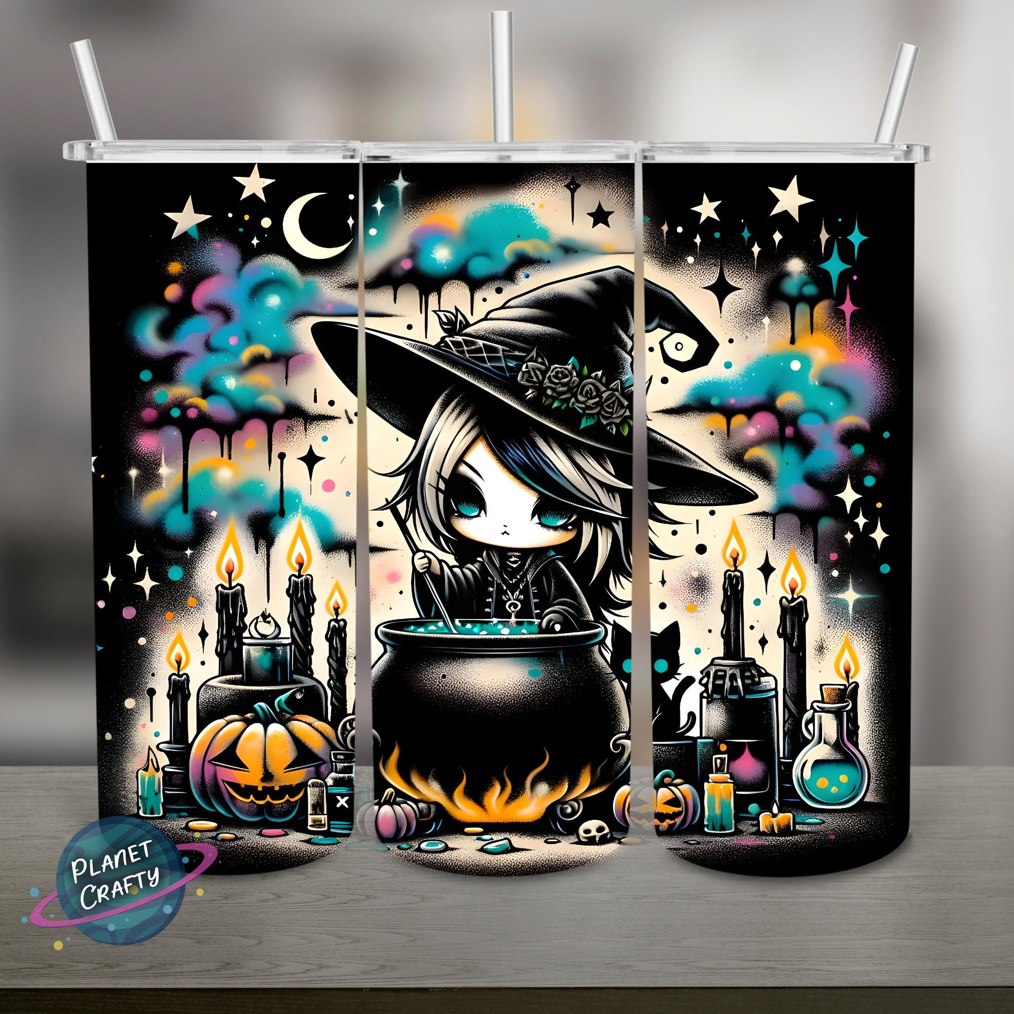 Little Witch, Halloween PNG Design, 20Oz Skinny Tumbler Wrap, Digital Download