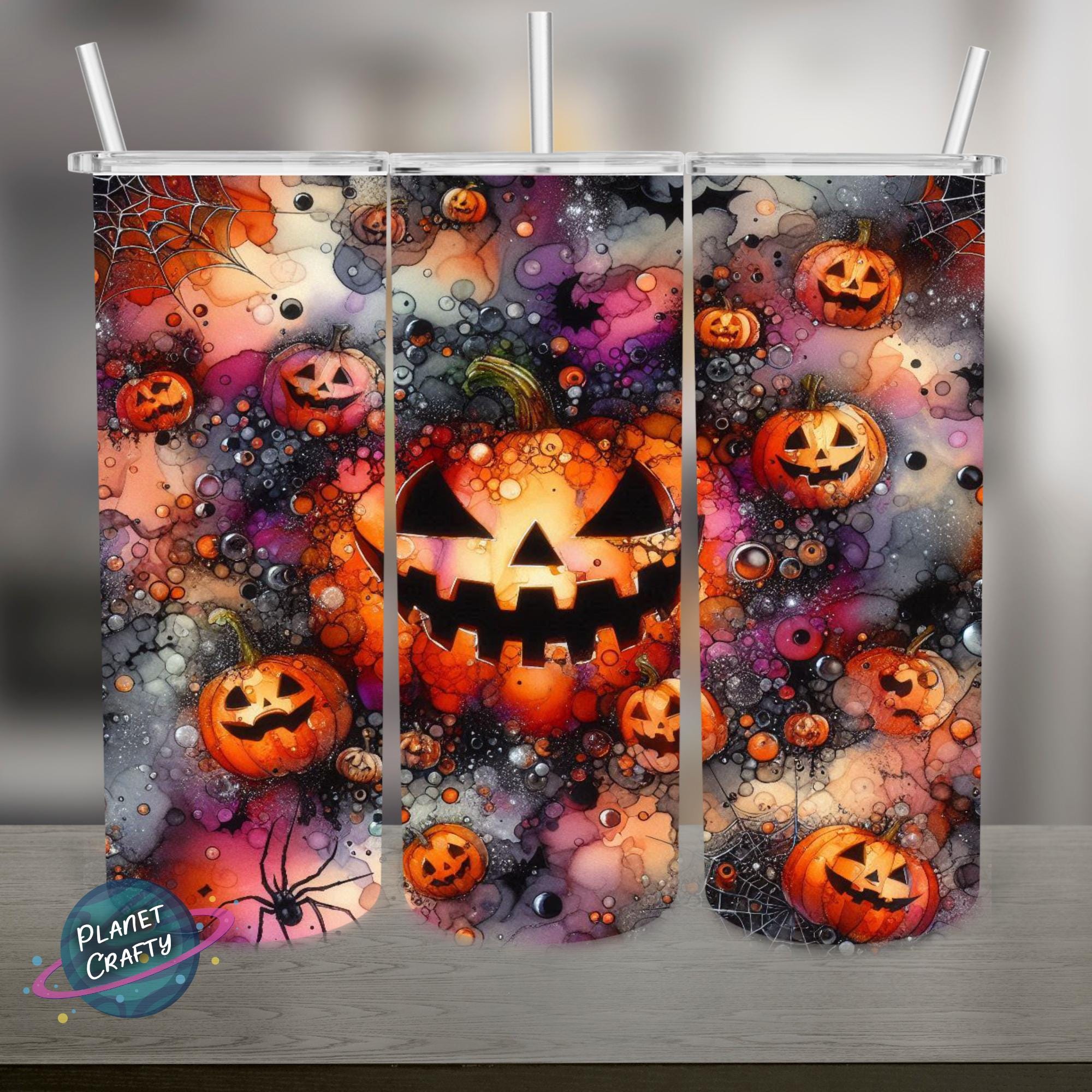 Jack-O-Lantern Pattern, Halloween Pumpkin PNG Design, 20Oz Skinny Tumbler Wrap, Digital Download