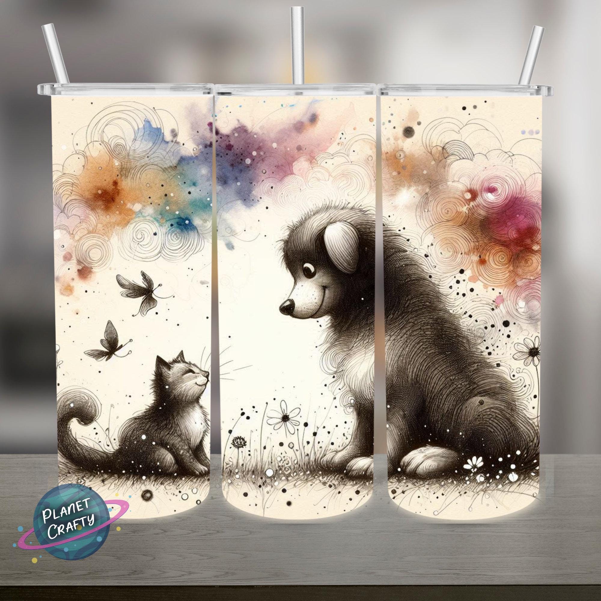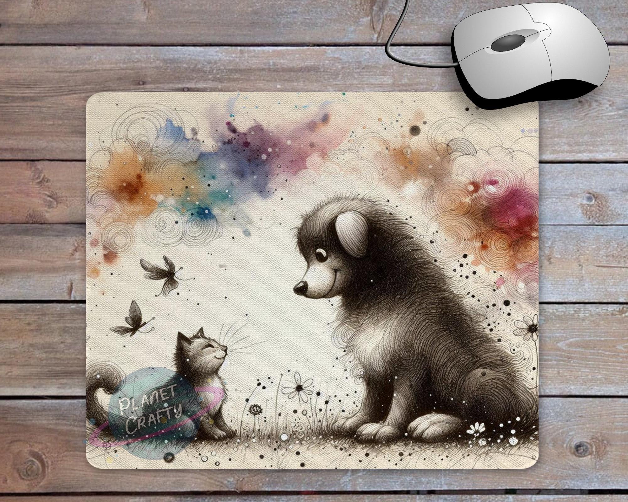 Dog and Cat, Cute Illustration Mouse Pad PNG Design, Digital Download