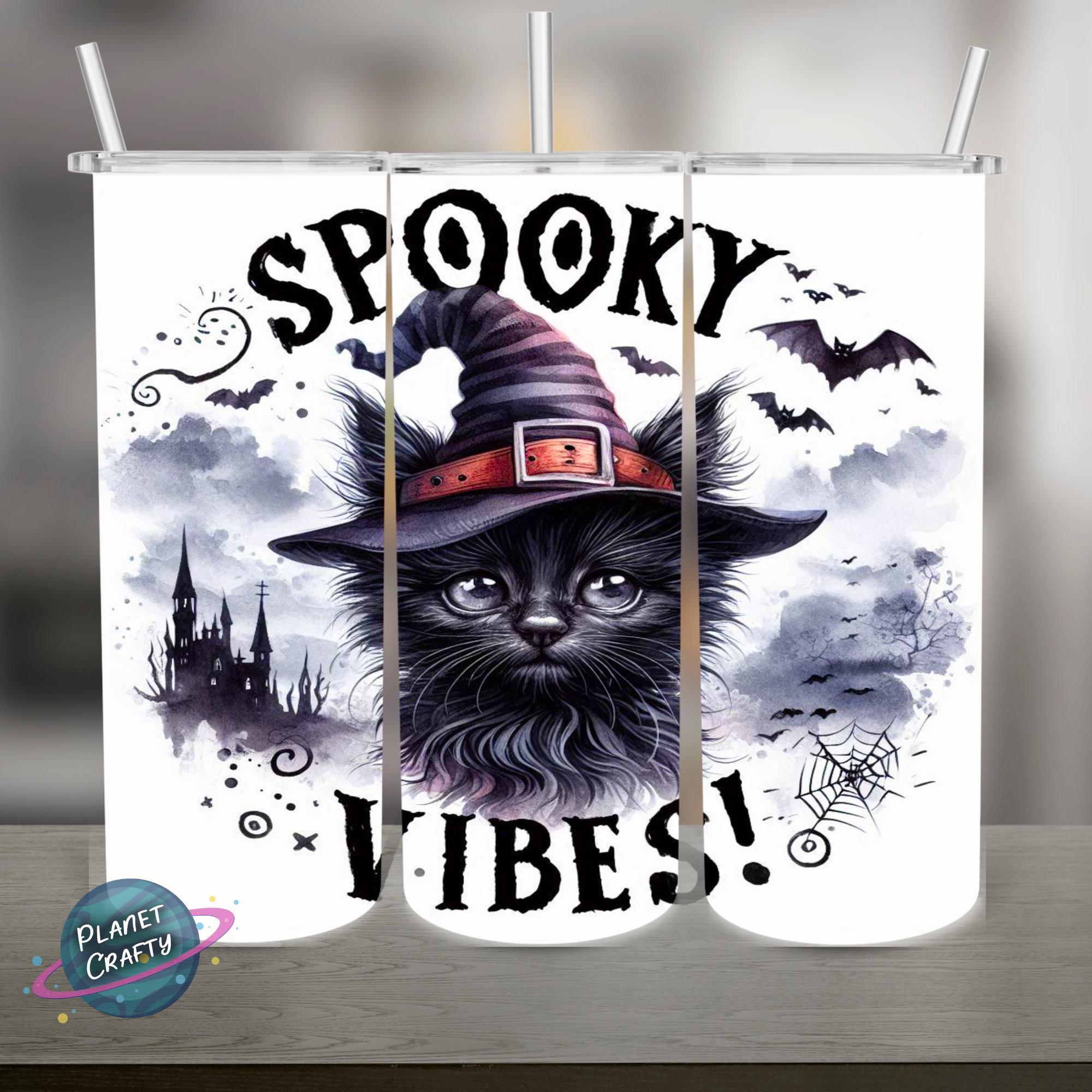 Spooky Vibes, Black Cat PNG Design, 20Oz Skinny Tumbler Wrap, Digital Download