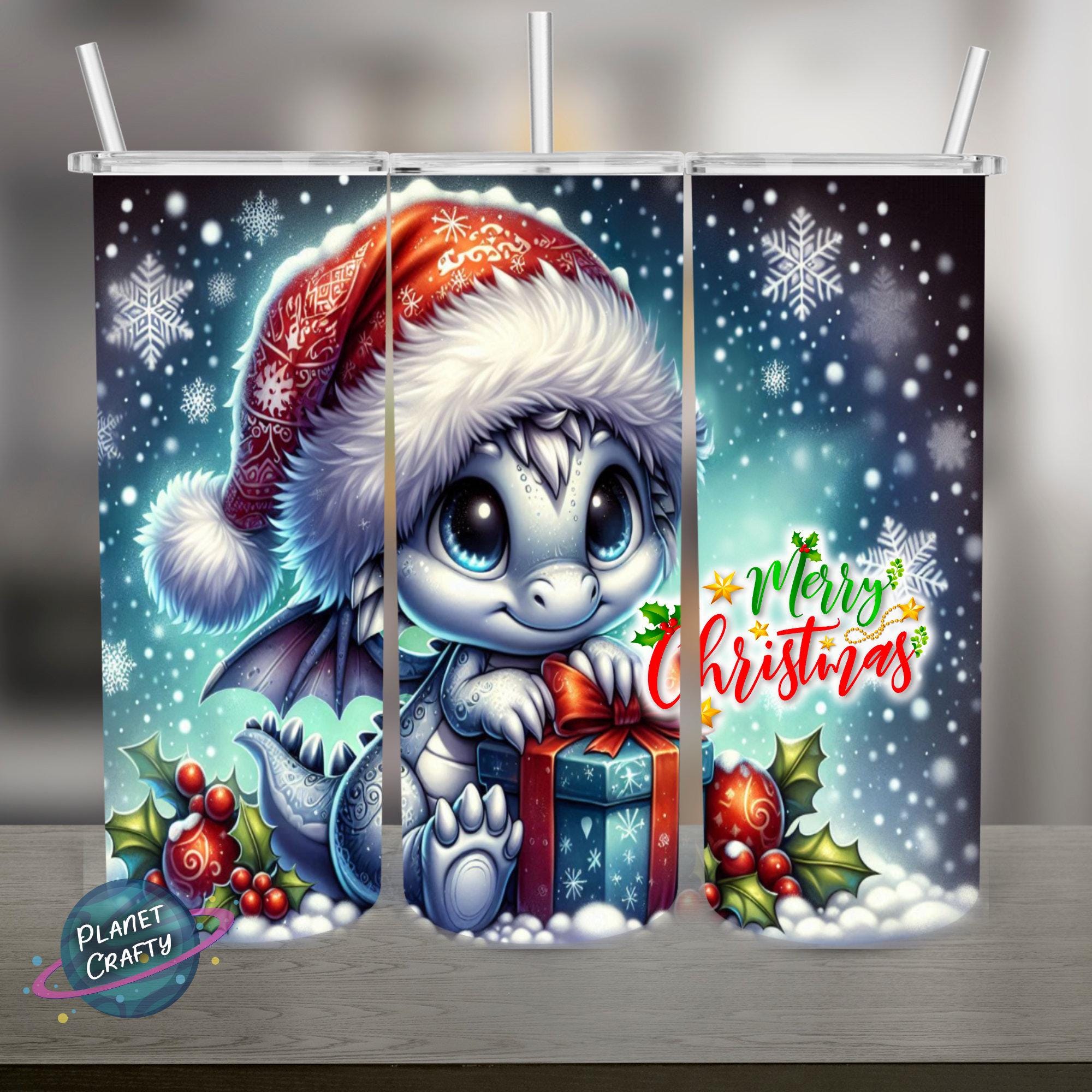 Cute Dragon, Merry Christmas PNG Design, 20Oz Skinny Tumbler Wrap, Digital Download
