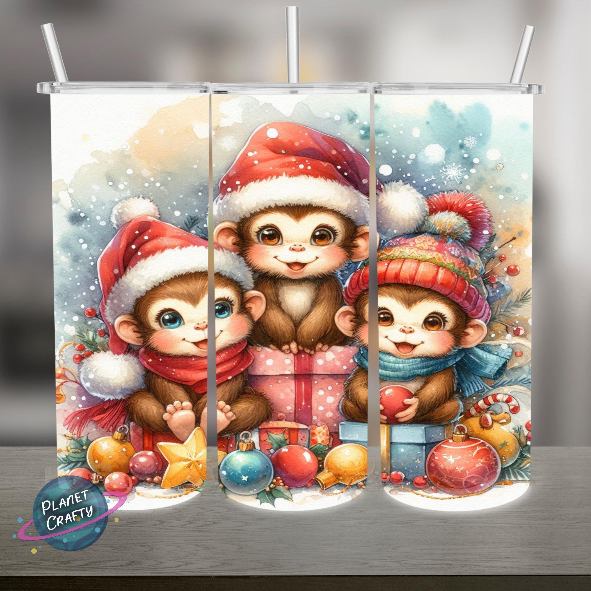 Cute Monkeys, Christmas PNG Design, 20Oz Skinny Tumbler Wrap, Digital Download