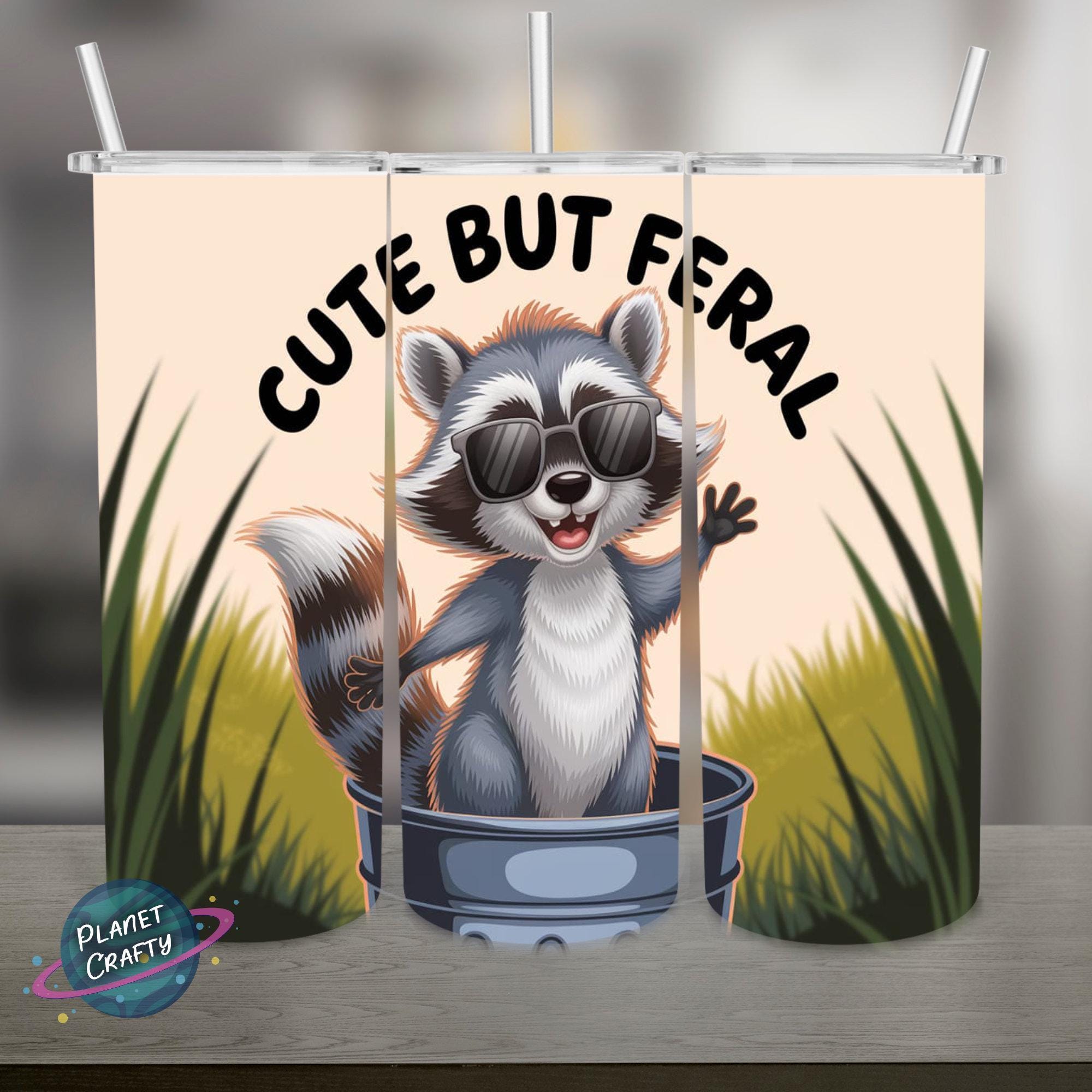 Cute But Feral, Raccoon PNG Design, 20Oz Skinny Tumbler Wrap, Digital Download