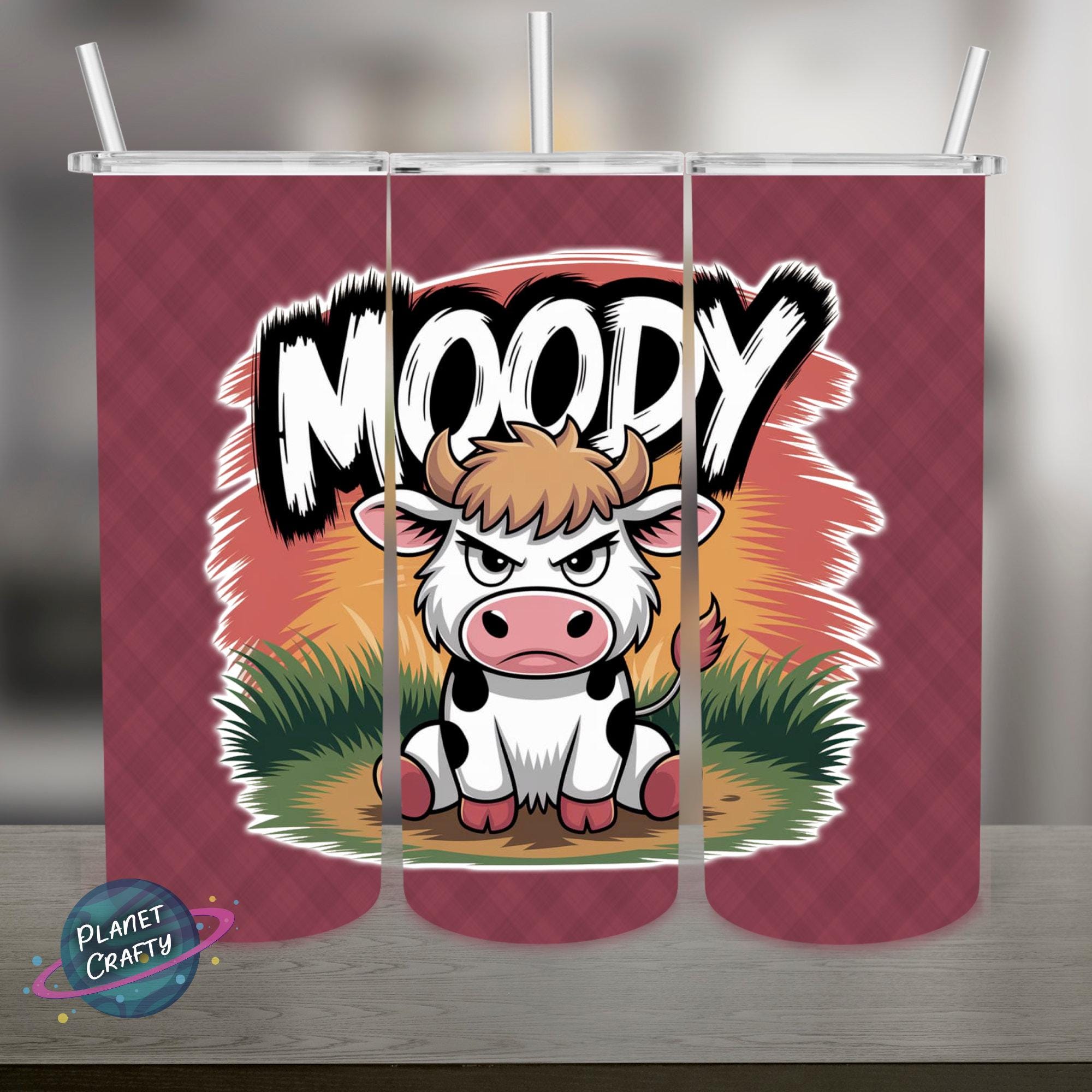 Moody, Funny Cow Illustration PNG Design, 20Oz Skinny Tumbler Wrap, Digital Download